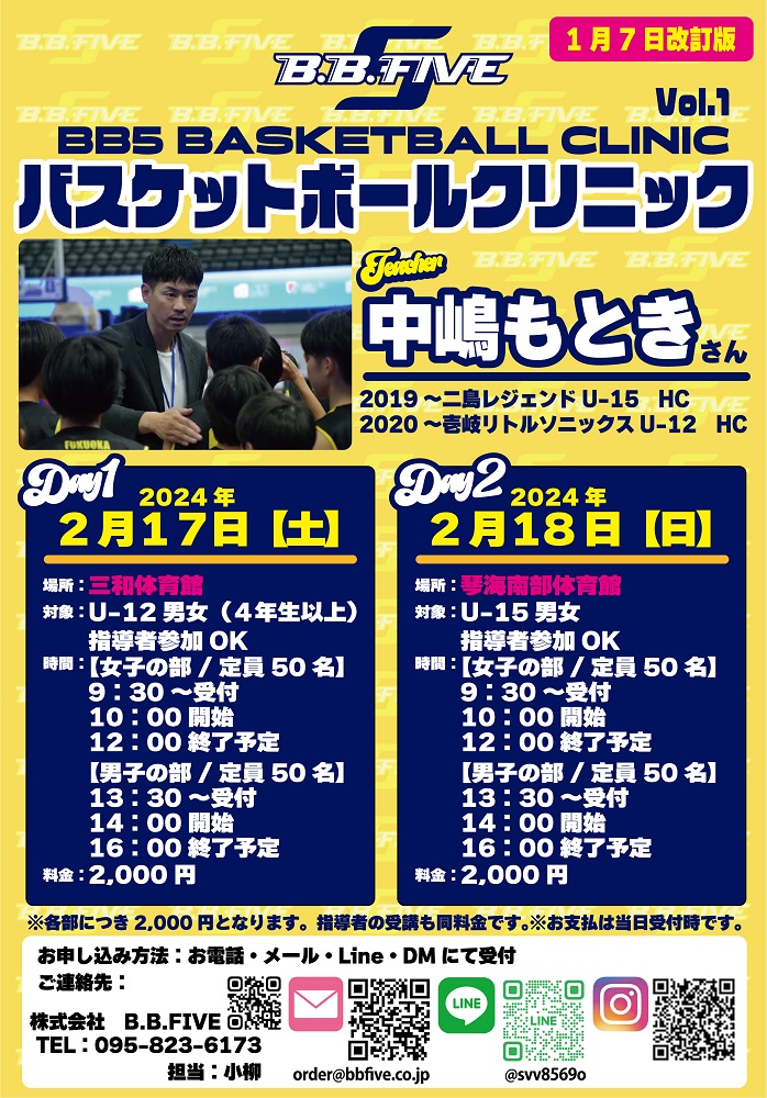 BB5バスケットボールクリニックVol.1の会場が変更になりました!!