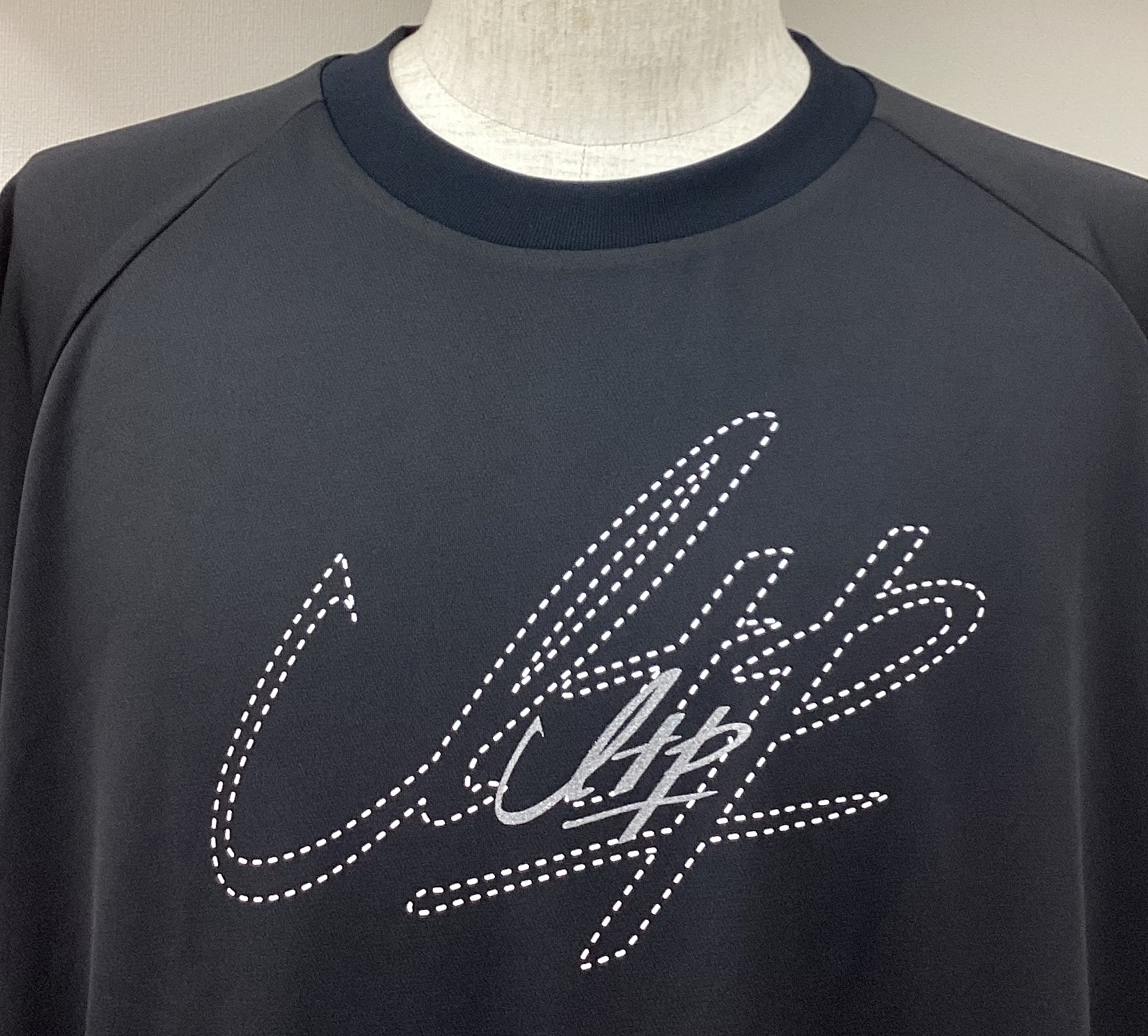 胸元にITPの文字を筆記体でプリントし右裾には力強いメッセージが入ったネームタグ