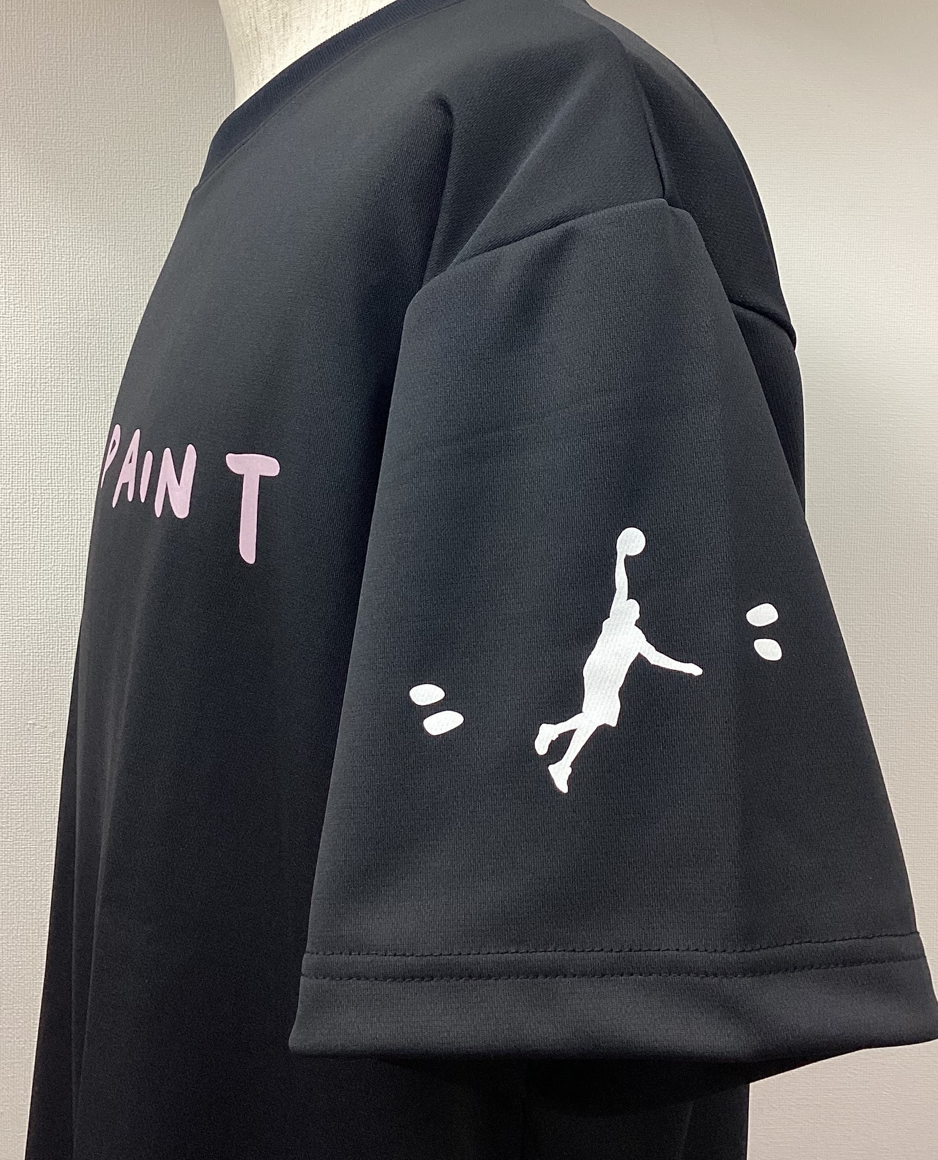 胸元から袖にかけてIN THE PAINTの文字が手描き風にプリントされたバスケットTシャツです。